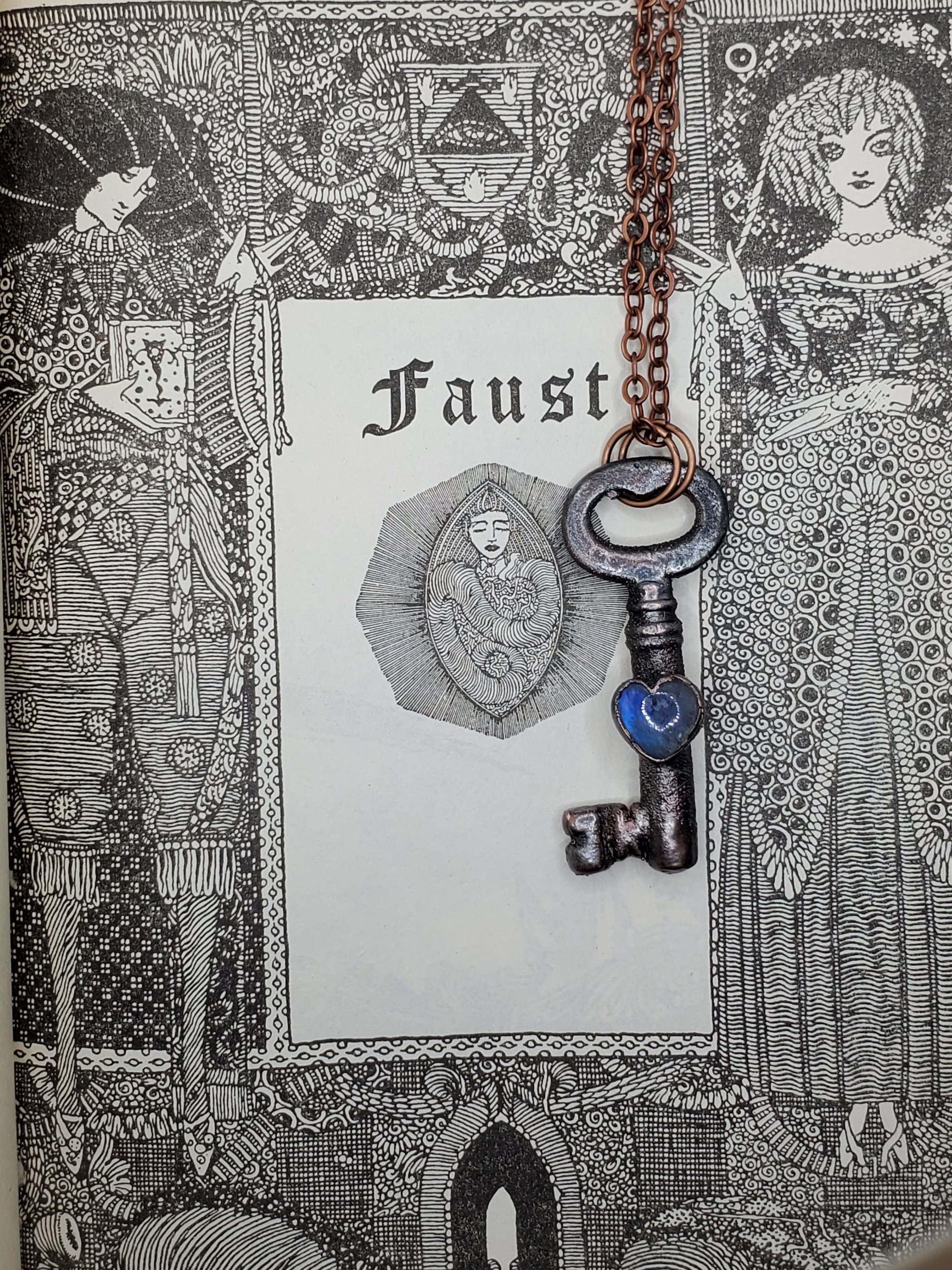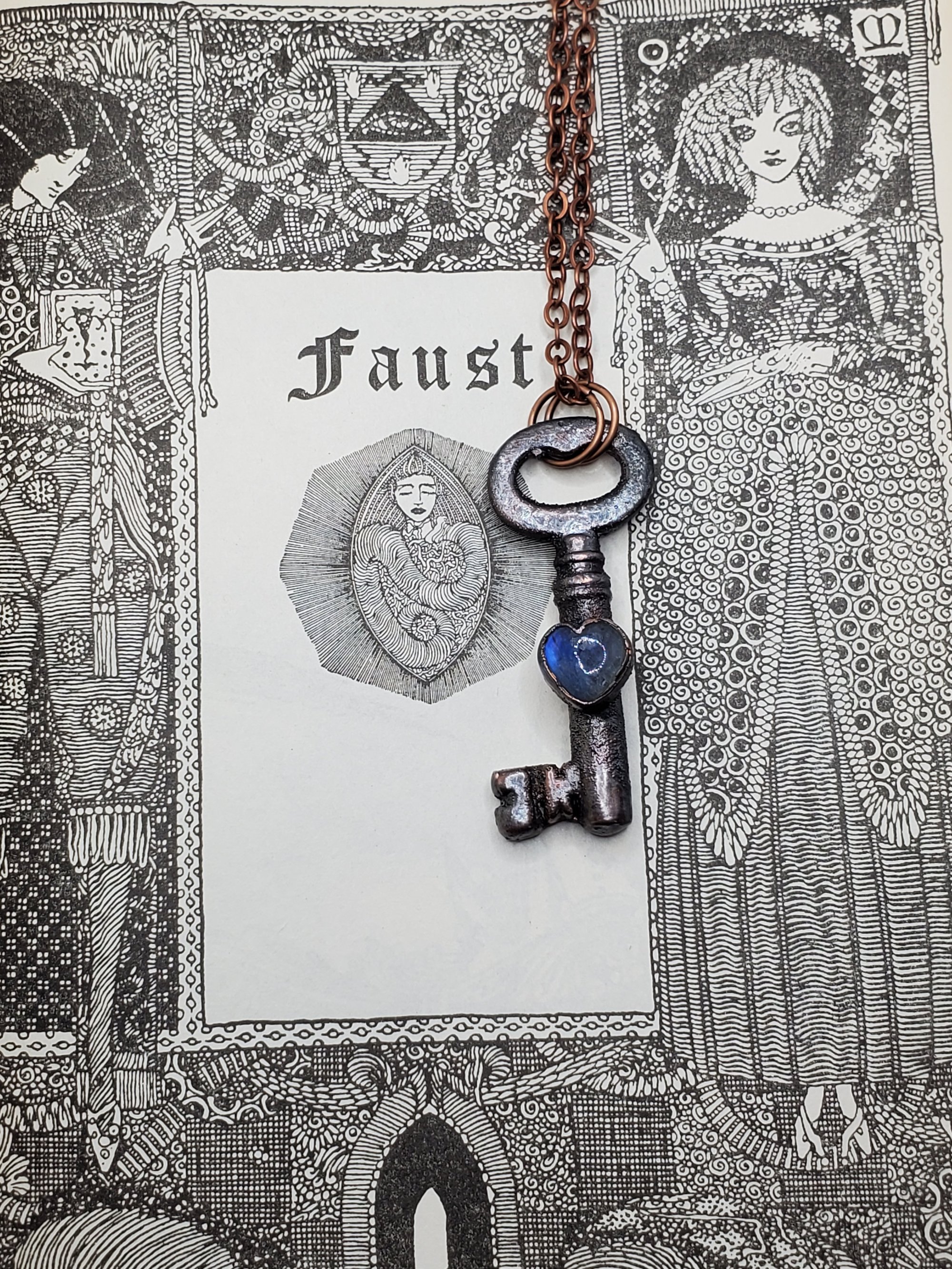 Real Antique Skeleton key pendant. Moonstone the stone of "new beginning", Helps with inner growth and strength. Comes with copper chain.